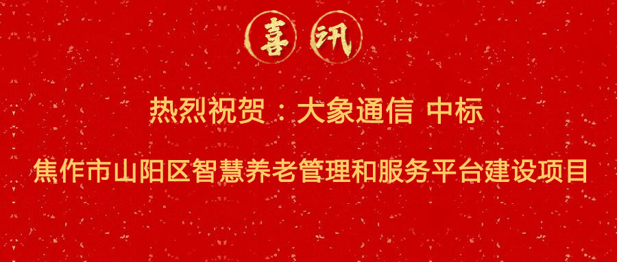 中標喜訊 | 熱烈祝賀:大象通信中標焦作市山陽區智慧養老管理和服務平臺建設項目
